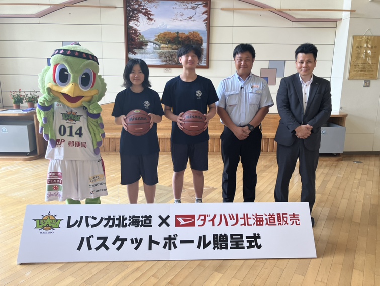 レバンガ北海道さまご協力のもと、中学校へバスケットボールを寄贈いたしました。