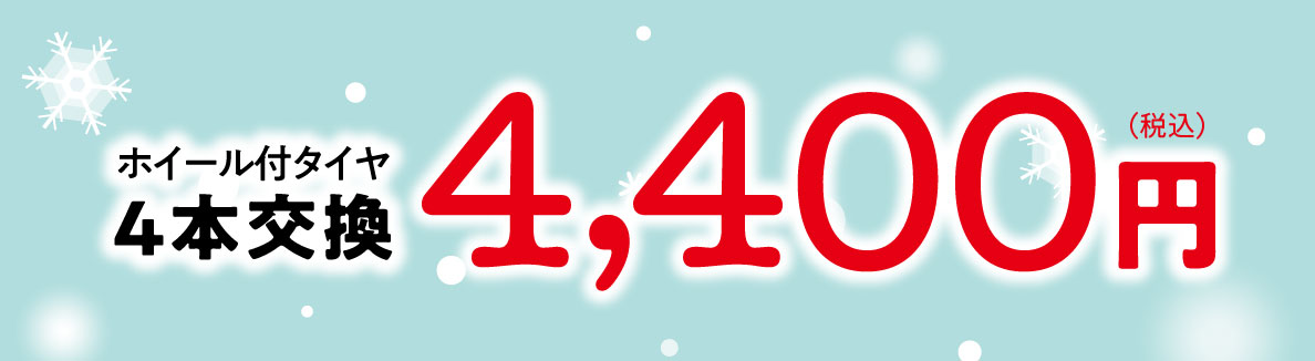 ホイール付タイヤ4本交換で4,400円(税込)