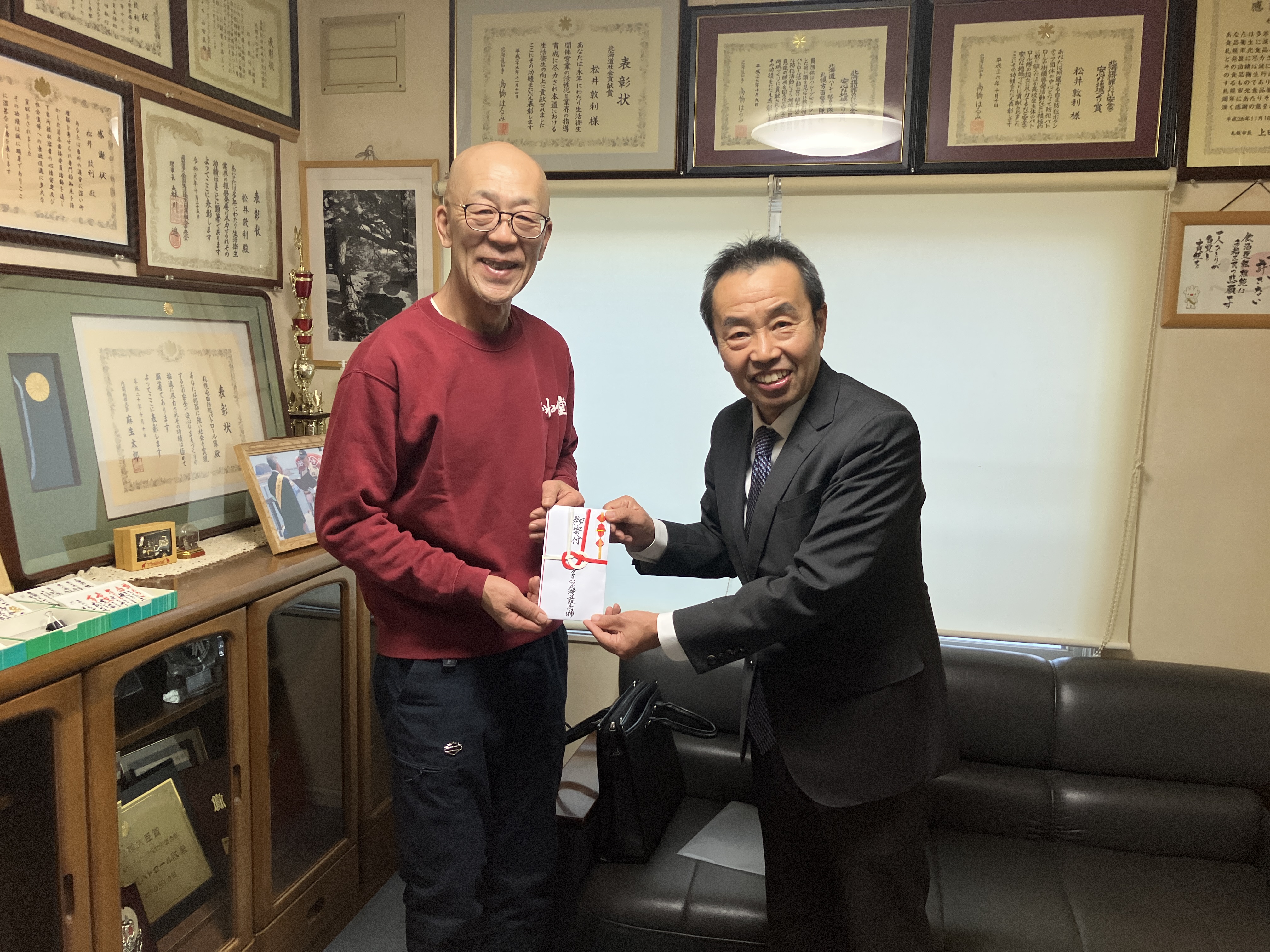 当社社長の溝田が伺い、お渡しさせていただきました。