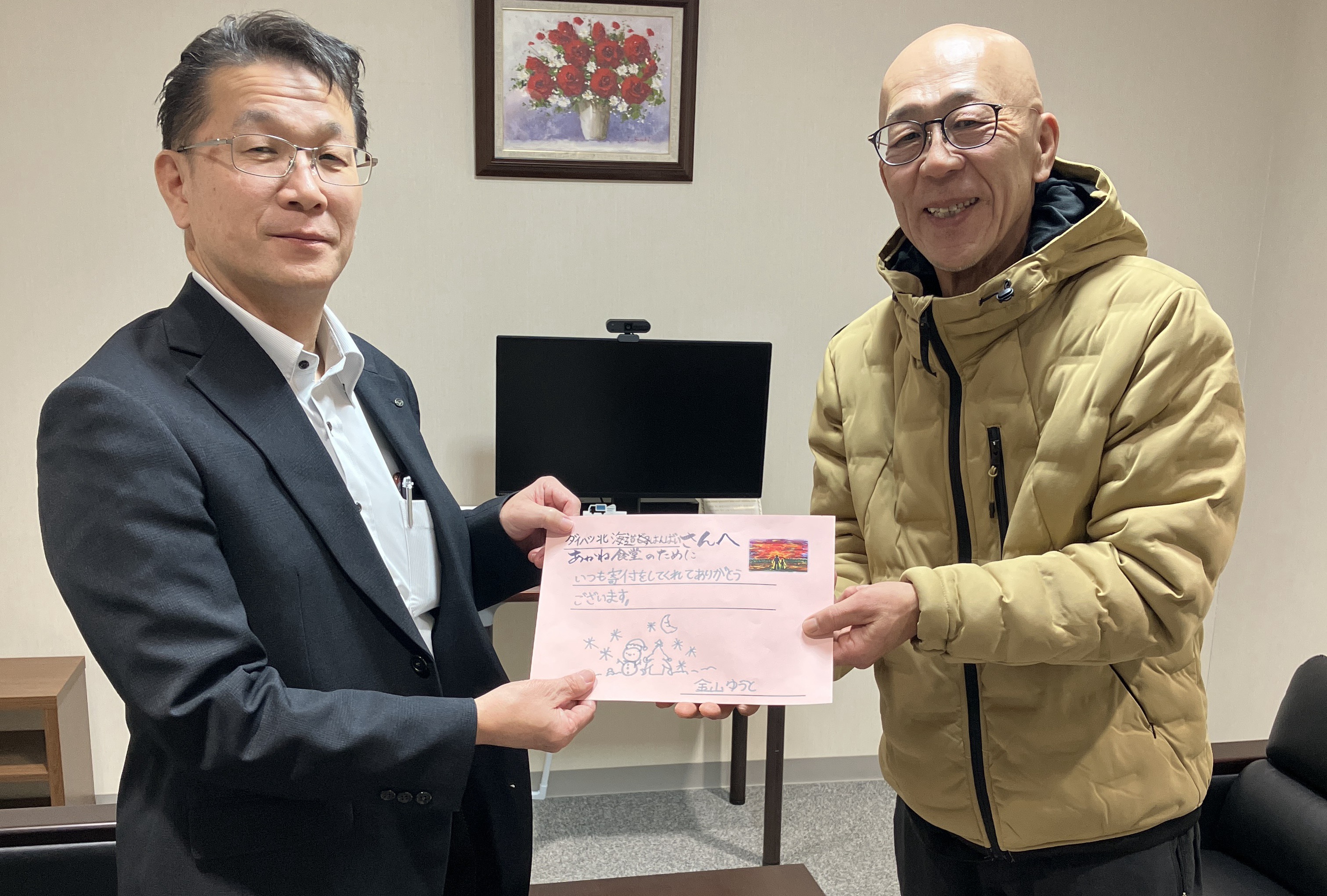 ダイハツ北海道では地域貢献の一環として、マルシェでの売上金を「あかね食堂」さんに寄付致しました。