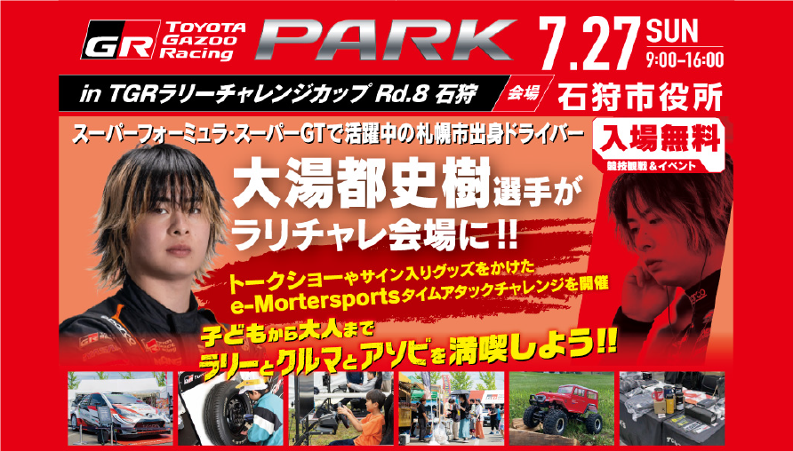 【イベント終了】7月27日(日)TGRラリーチャレンジカップRd.8 石狩が開催!!石狩市役所にて、入場無料です!