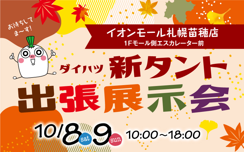 【イベント終了】10/8-9の2日間 イオンモール札幌苗穂店にてダイハツ 新タント出張展示会を開催!