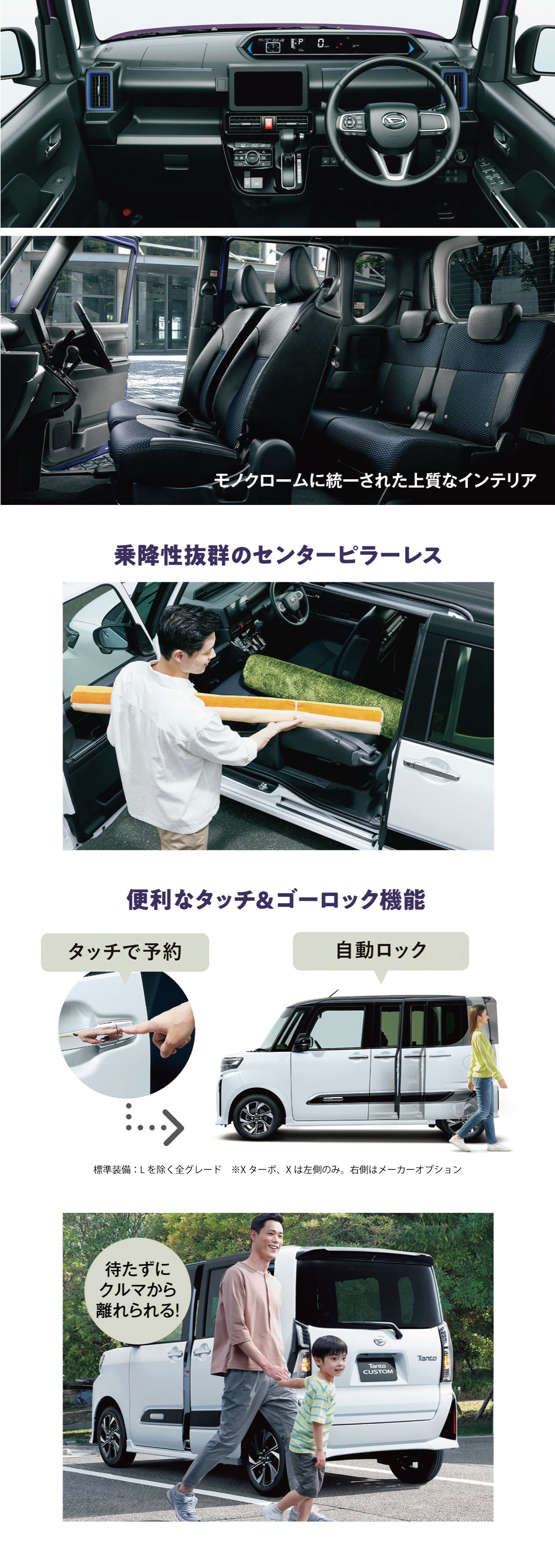 ※残価設定型クレジットは予め据え置いた残価(2年~7年後の下取価格)を差し引いた分を分割(2年間~7年間)でお支払いいただくクレジットのプランです。お支払い期間は2年(24回もしくは2回)、3年(36回もしくは2 回)、4年(48回もしくは2回)、5年(60回もしくは2回)、7年(84回)です。諸費用込みの現金販売価格は、車両本体価格、保険料、税金、登録諸費用、リサイクル料金を含みます。対象車種、車両 本体価格、割賦手数料率などは、営業スタッフにお尋ねください。最終回のお支払いは、当社でダイハツの新車にお乗換えの場合、または車両をご返却いただく場合は、基本的に必要ございません が、その際の車両状態が、事前に定めた規定外である場合は、別途差額を頂戴します。再クレジット時の割賦手数料率は、再クレジット契約成立時点の当社が定める割賦手数料率を適用します。 本クレジットは予告なく終了する場合がございますので予めご了承ください。