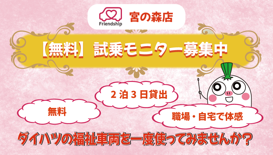 2022年1月~宮の森店で福祉車両の試乗モニターを募集中!(無料です)