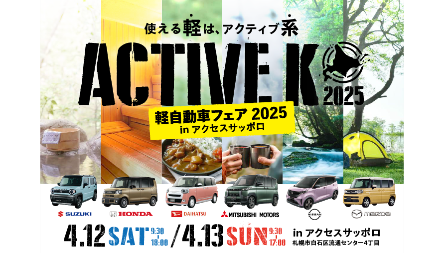 【イベント終了】2025年4月12日(土)~13日(日)使える軽は、アクティブ系 「軽自動車フェア2025inアクセス札幌」開催!