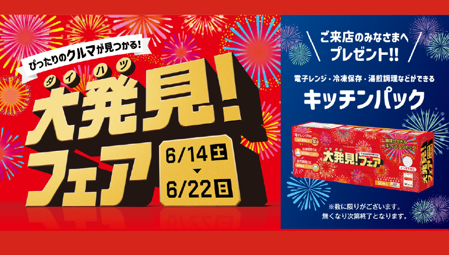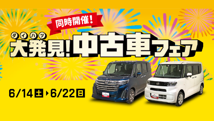【イベント終了】6月14日(土)~22日(日)の9日間で「大発見!中古車フェア」を開催!お気に入りのおクルマを大発見してください!