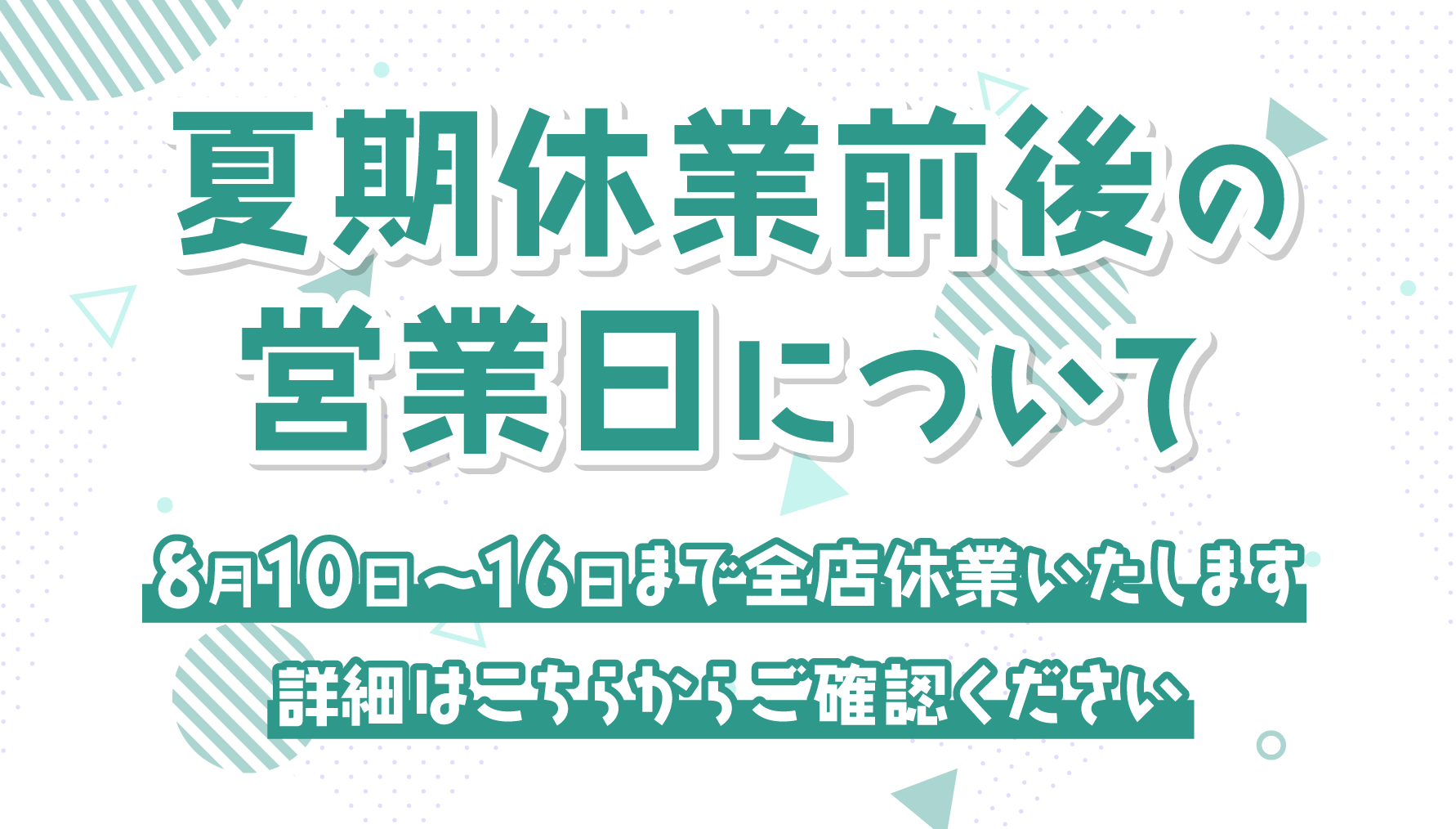 8/10(土)~8/16(金)までは全店休業いたします。詳しくはこちら。