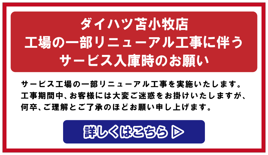 2024/05/27ダイハツ苫小牧店 工場の一部リニューアル工事のお知らせ