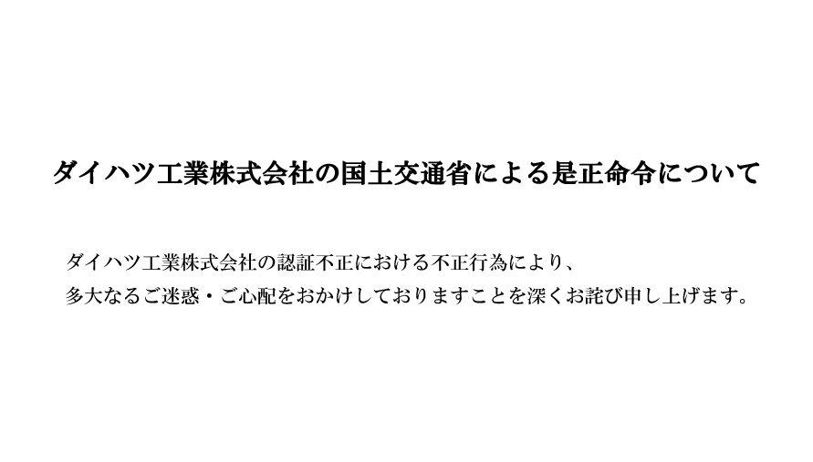ダイハツ工業株式会社の国土交通省による是正命令についてはこちらをご確認ください。