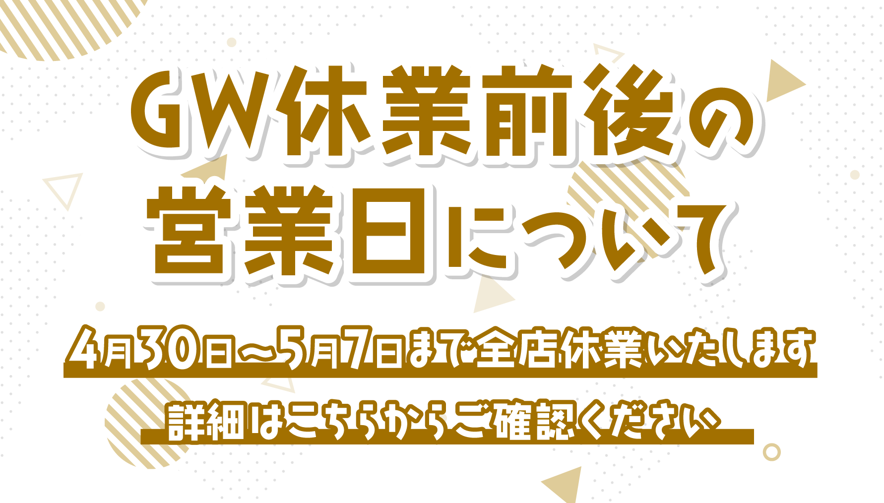 ゴールデンウィークは4月30日から5月7日まで全店休業となります。