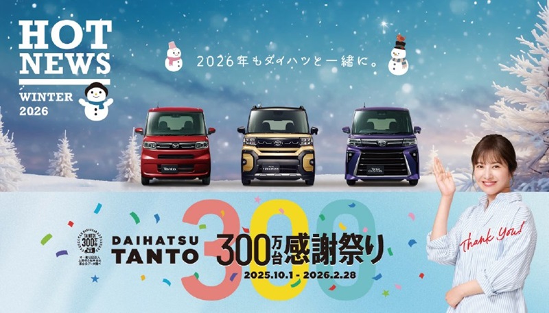 ・初回車検を迎えるダイハツ製乗用車(走行距離3万キロ未満)が対象です。