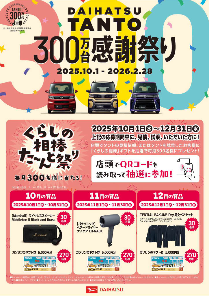 タント300万台感謝祭り開催中!