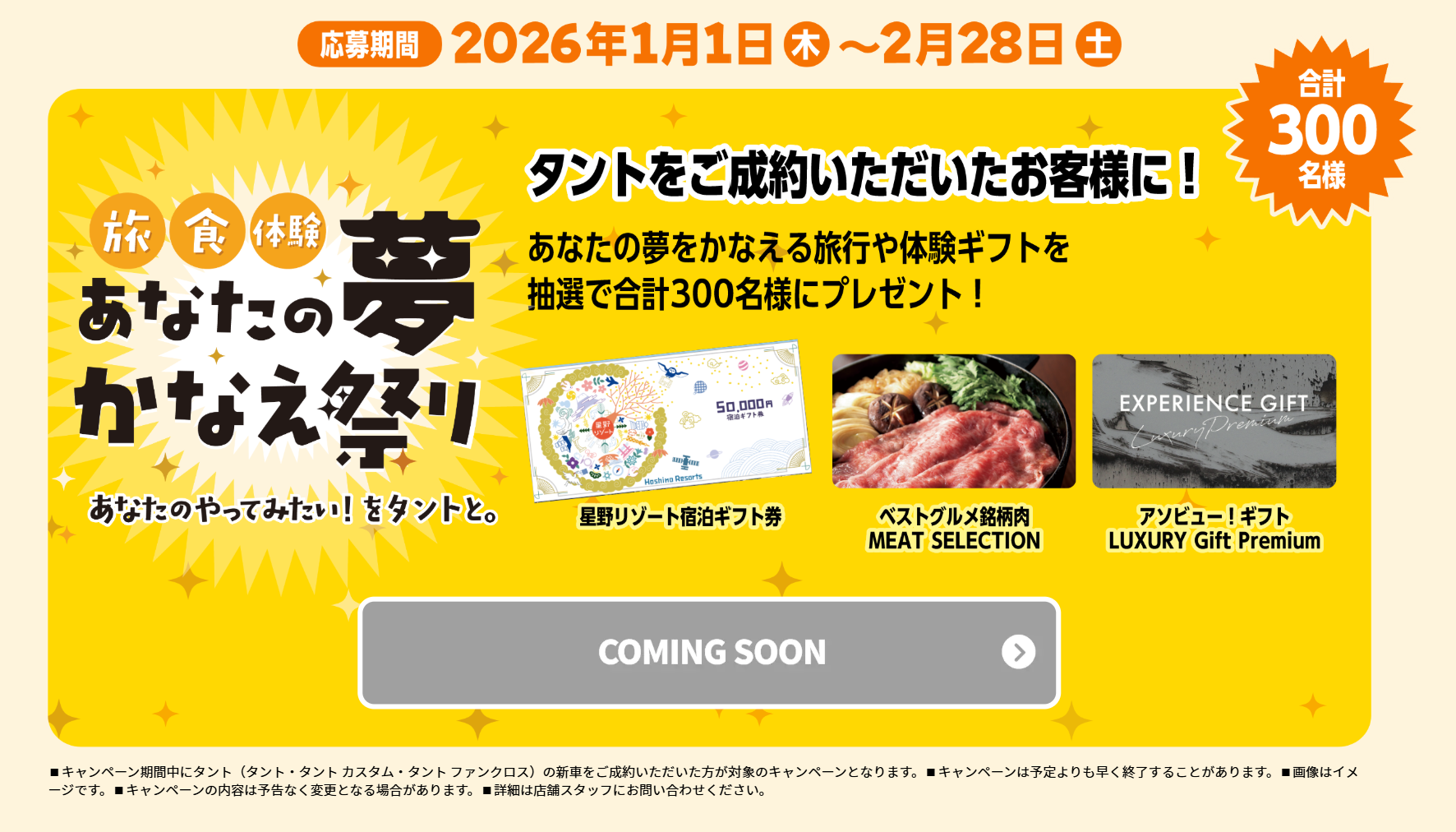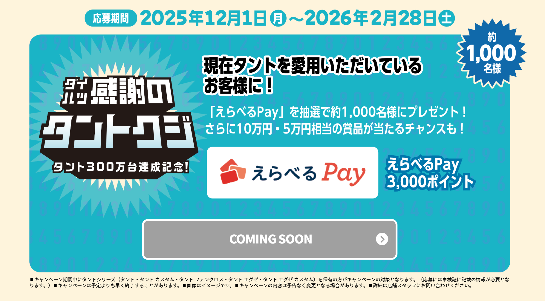 店頭でタントのお見積りまたは試乗いただいたお客様へ