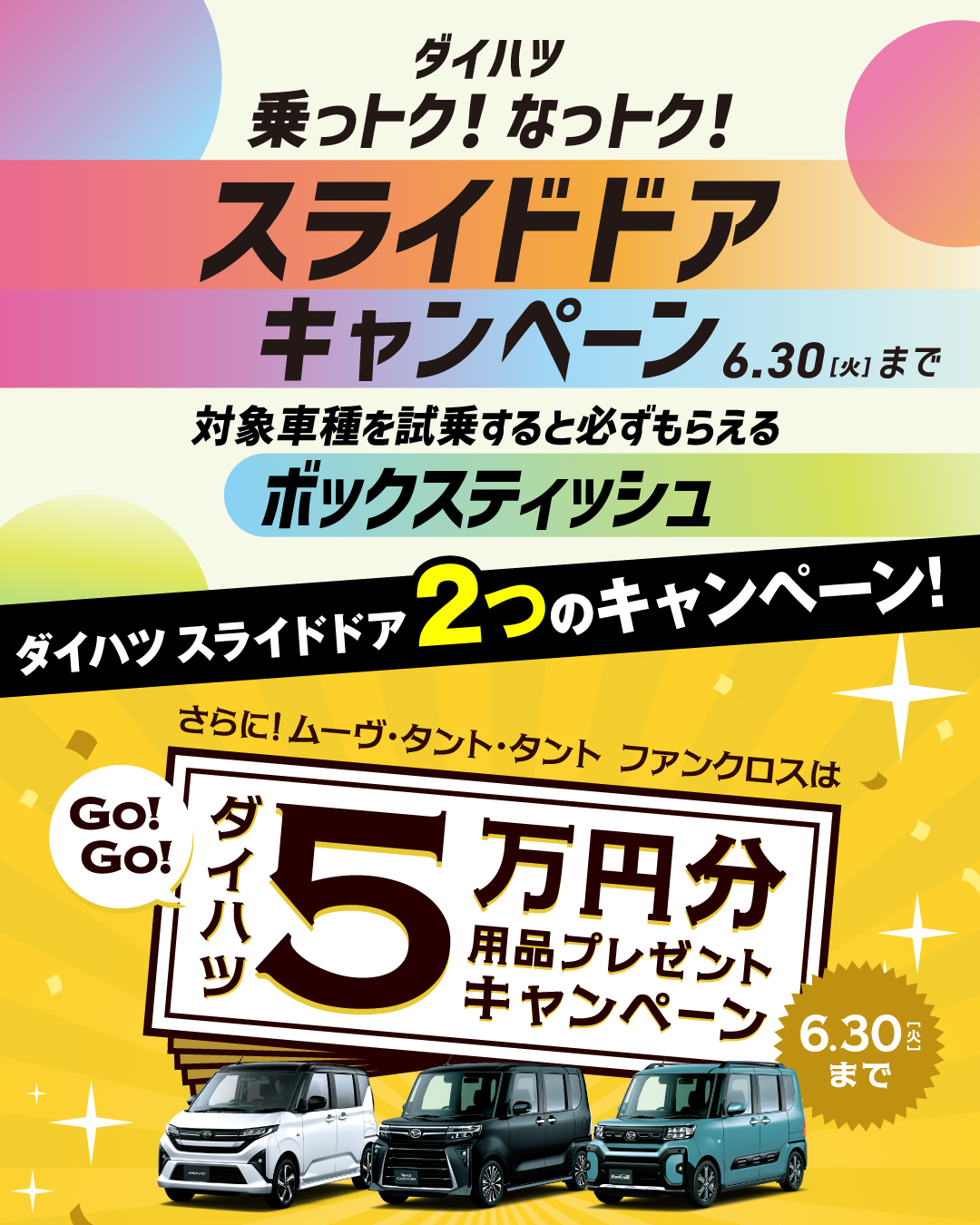 キャンペーン期間中に、対象のスライドドア車をご試乗いただいたお客様へ