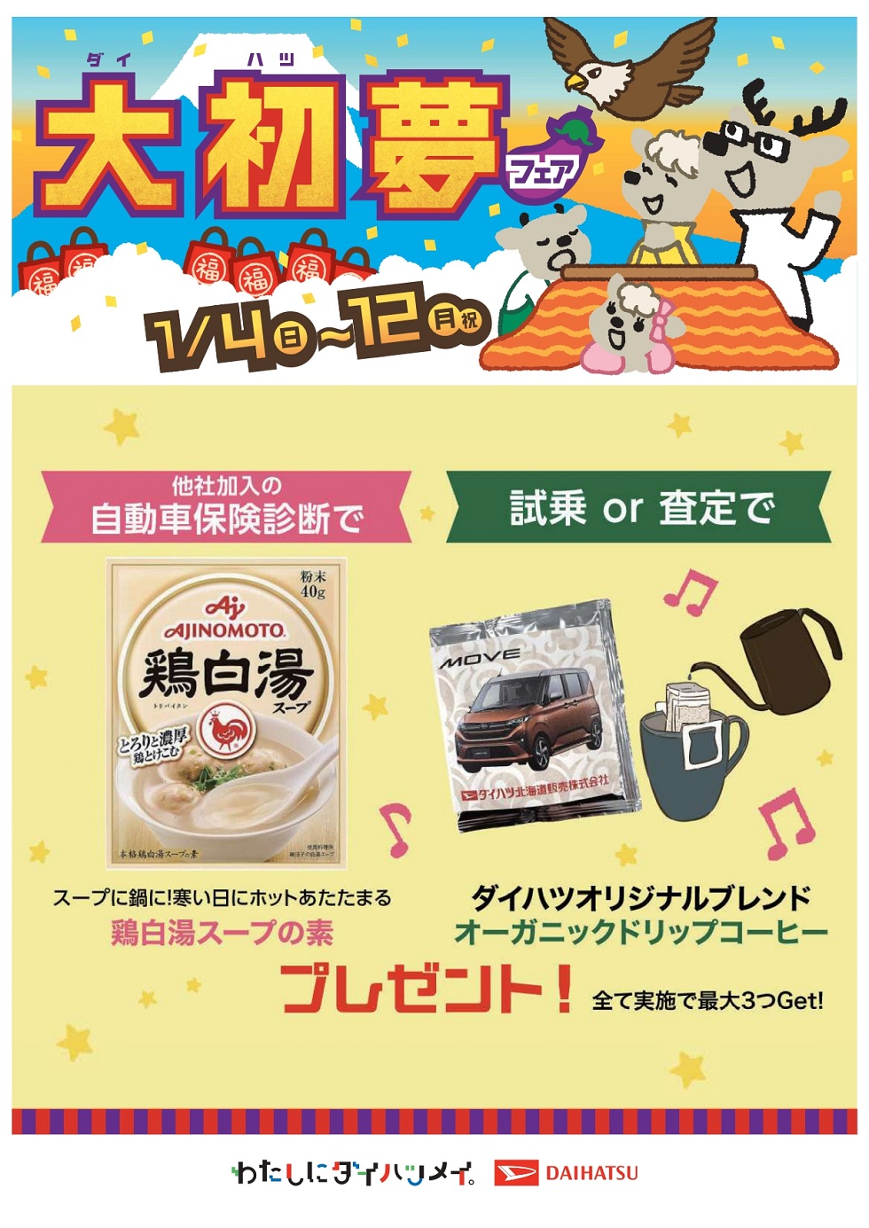 ダイハツ北海道販売㈱美しが丘店をご利用いただき、誠にありがとうございます。弊社では、昨今の慢性的な人手不足や諸経費の上昇などの厳しい経営環境の中で社員の長時間労働の抑制等の働き方改革を進めているところでございます。